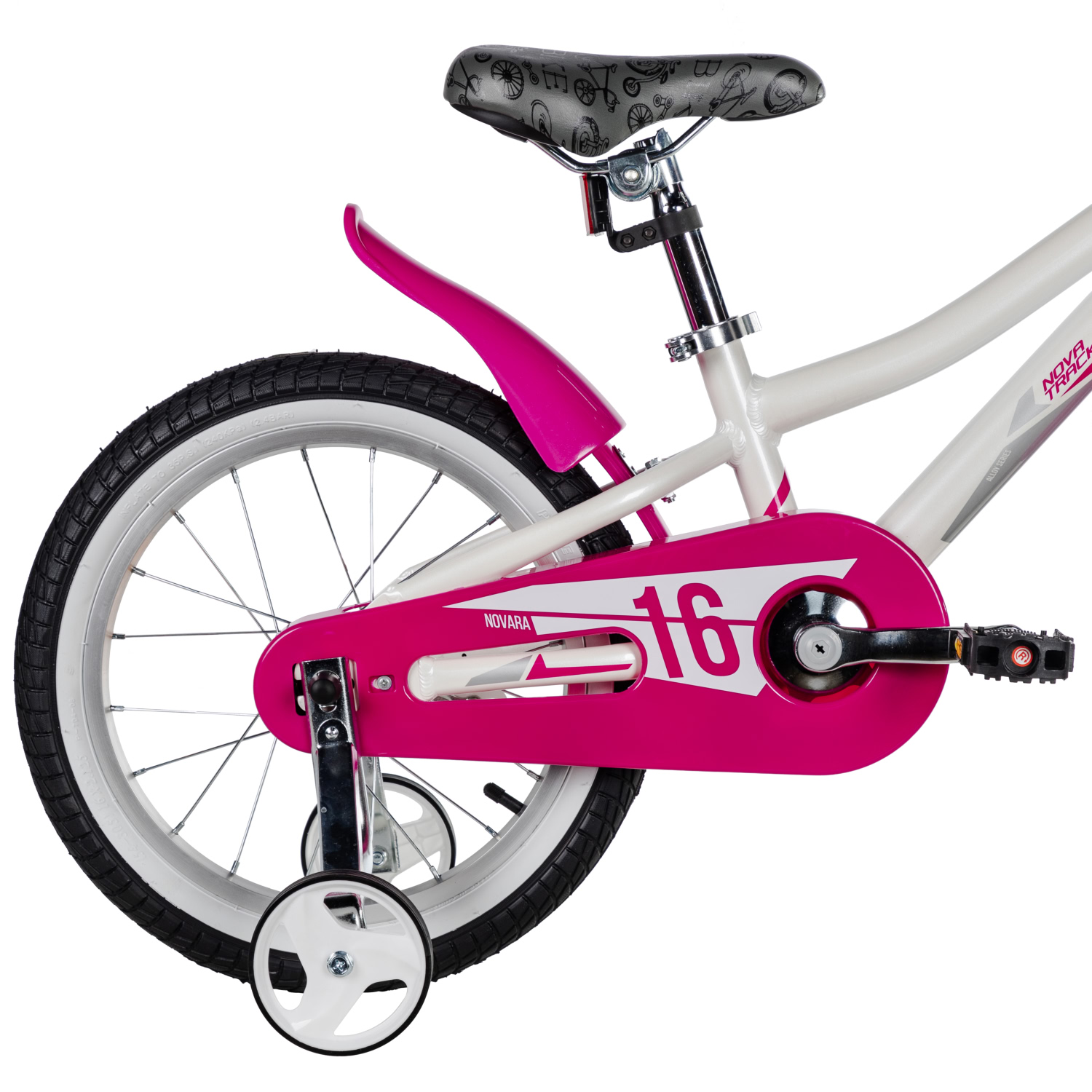 Детский велосипед NOVARA 1.V с 16-ти дюймовыми колесами предназначен для девочек ростом от 110 до 115 см. Прочный, надежный и современный, он создан для активных прогулок с друзьями в парке. Велосипед сконструирован на алюминиевой раме и оснащена жесткой вилкой. Тормозная система представлена задним ножным тормозом – простым и понятным в управлении и передним v-brake тормозом - неприхотливым в обслуживании. Передние и задние крылья, а также полная защита цепи сохранит одежду ребенка во время езды от грязи, пыли и не даст заживаться ей в механизмы велосипеда. Седло регулируется по высоте, а по бокам установлены дополнительные съемные колесики помогающие держать равновесие и мягко заходить в поворот на дорогах. Novatrack NOVARA 1.V представлена в белом и пурпурном цветах. Выбирайте любой!