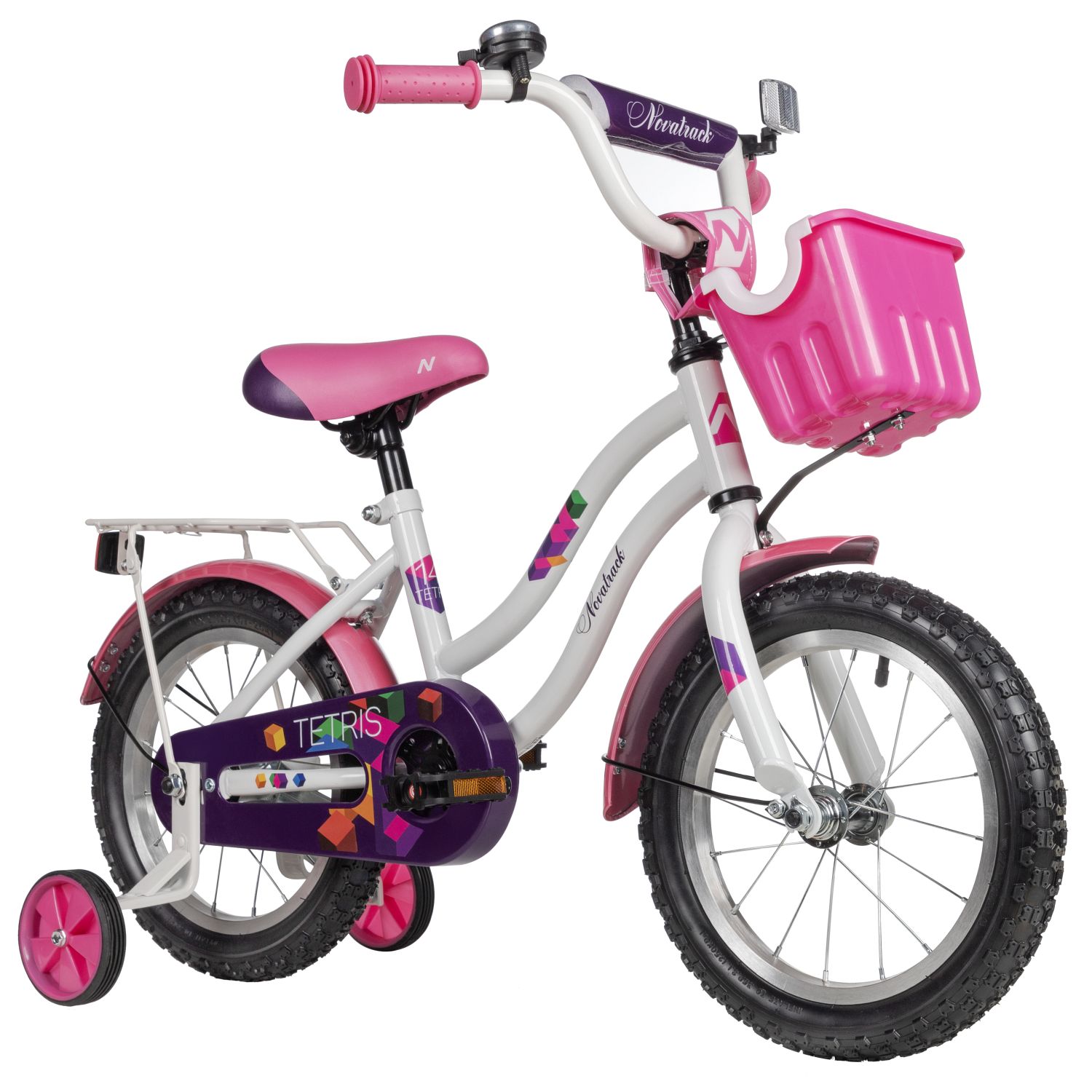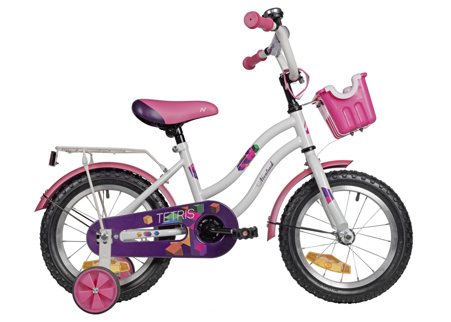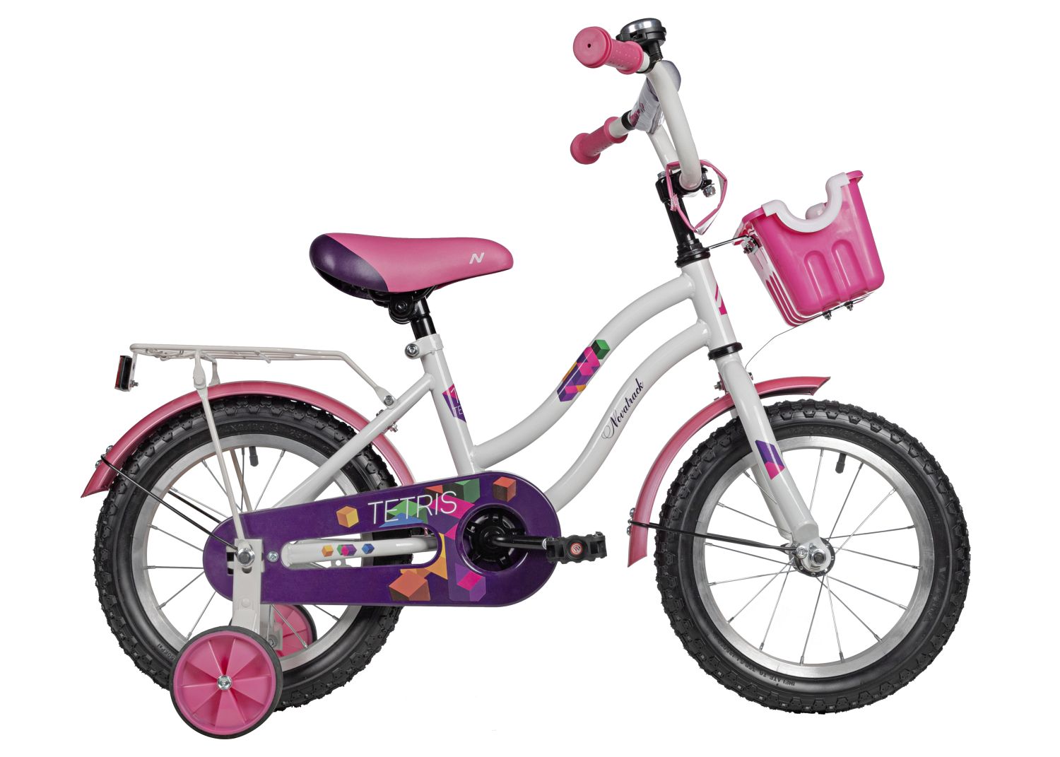 Детский велосипед Tetris 14 дюймов - яркий велосипед, выполненный в белом или фиолетовом цветах будет радовать своего маленького обладателя не один год. Главным плюсом этого байка остается комфорт, безопасность и надежность конструкции. У Tetris множество преимуществ, выделяющих эту модель среди остальных - это стальная изящная рама, привлекающая внимание, яркие компоненты, корзина для полезных мелочей, которые можно взять с собой в поездку, стальной багажник, на который можно усадить друга и кататься вместе. Удобные регулировки позволят подобрать комфортную посадку, а крылья, идущие в комплекте, защитят велосипед и наездника от грязи и брызг в непогоду. Цепь защищена специальным защитным кожухом, закрывающим подвижные детали. А дополнительные колесики делают этот велосипед достойной стартовой моделью для начинающих! Tetris созданы с заботой о детях!