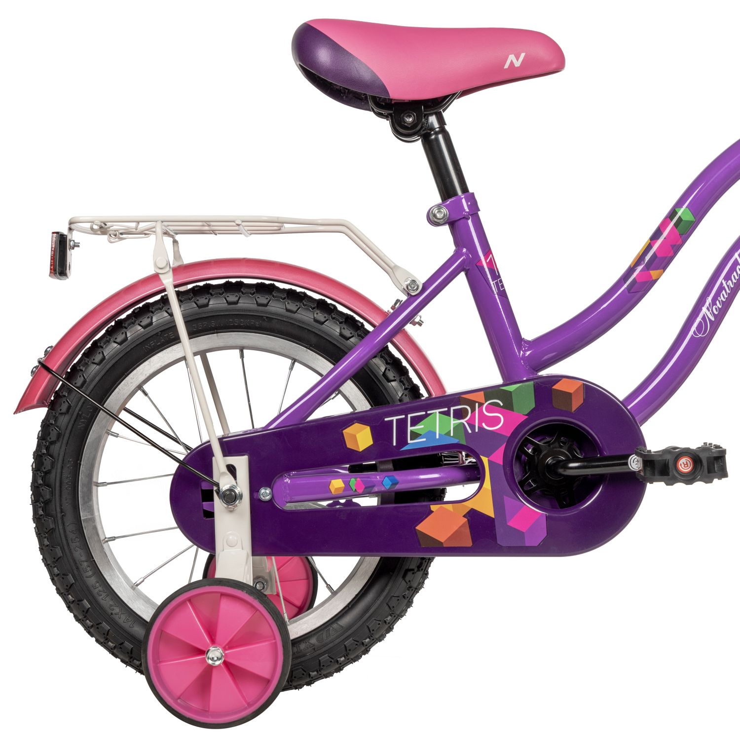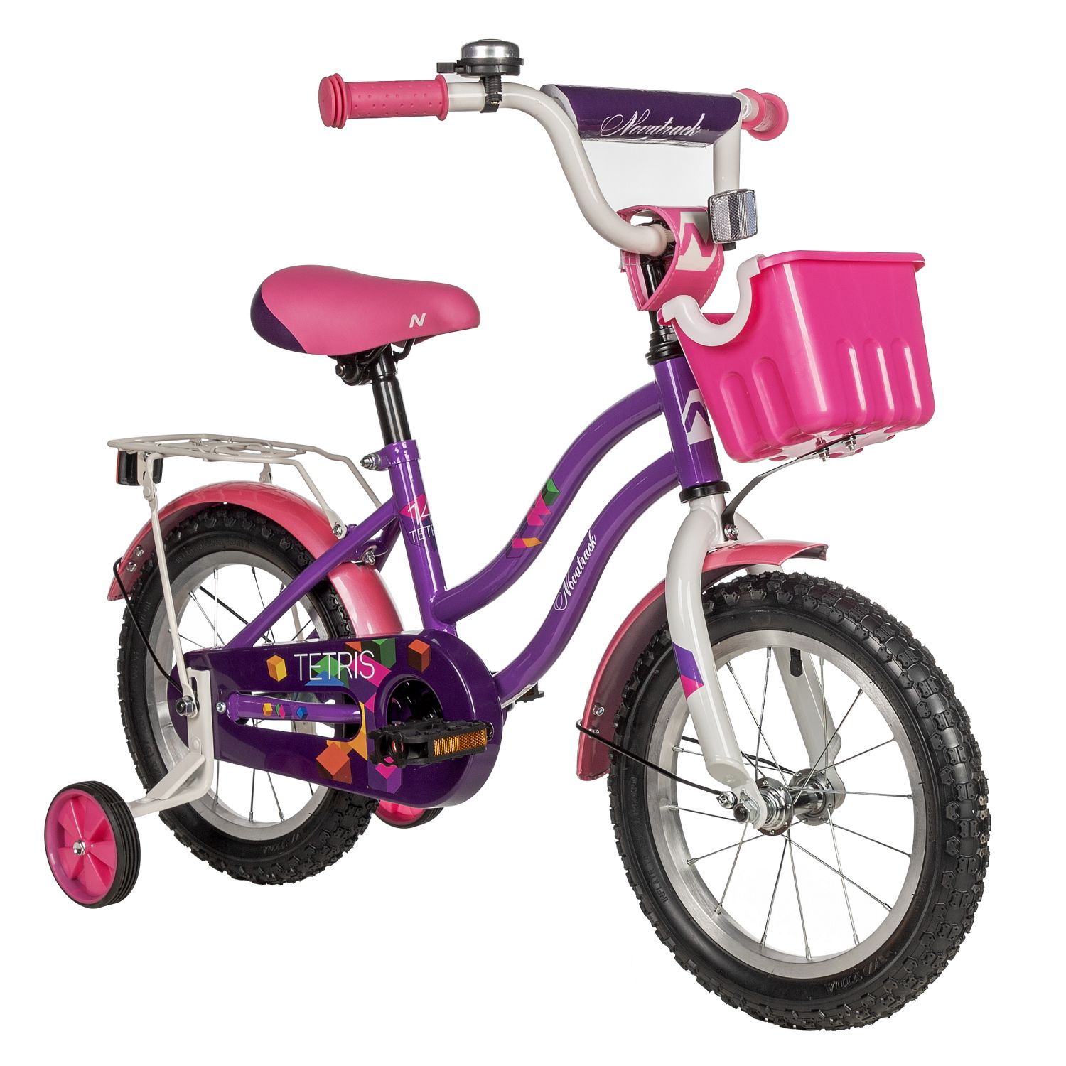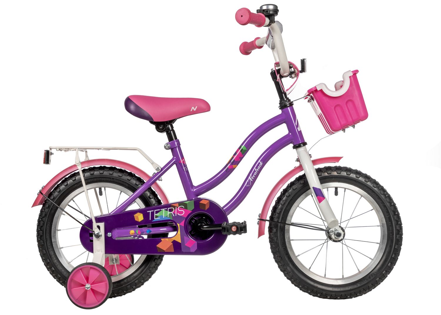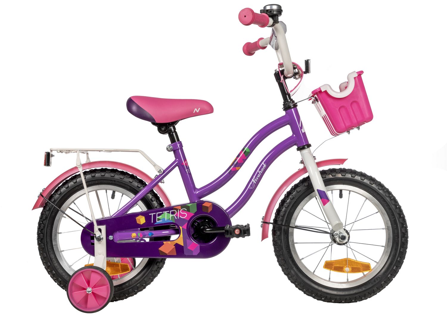 Детский велосипед Tetris 14 дюймов - яркий велосипед, выполненный в белом или фиолетовом цветах будет радовать своего маленького обладателя не один год. Главным плюсом этого байка остается комфорт, безопасность и надежность конструкции. У Tetris множество преимуществ, выделяющих эту модель среди остальных - это стальная изящная рама, привлекающая внимание, яркие компоненты, корзина для полезных мелочей, которые можно взять с собой в поездку, стальной багажник, на который можно усадить друга и кататься вместе. Удобные регулировки позволят подобрать комфортную посадку, а крылья, идущие в комплекте, защитят велосипед и наездника от грязи и брызг в непогоду. Цепь защищена специальным защитным кожухом, закрывающим подвижные детали. А дополнительные колесики делают этот велосипед достойной стартовой моделью для начинающих! Tetris созданы с заботой о детях!